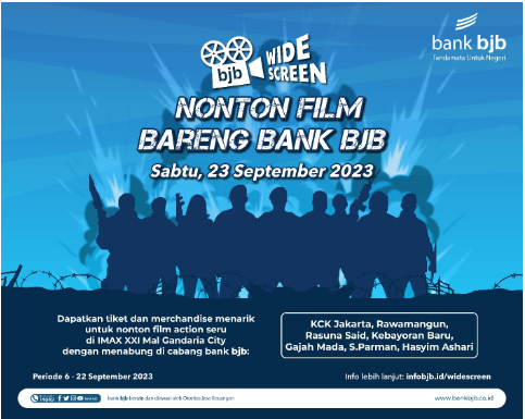 BANDUNG – bank bjb kembali menghadirkan program bjb WideScreen, yakni program nonton bareng untuk nasabah bank bjb. Kali ini, bjb WideScreen akan membagikan tiket nonton film Expendables 4 untuk para nasabah yang melakukan transaksi sesuai ketentuan. Film Expendables 4 merupakan salah satu film Hollywood yang dinanti-nanti oleh masyarakat Indonesia, karena untuk seri keempat ini dibintangi oleh aktor Indonesia Iko Uwais. Selain itu film ini dibintangi para aktor populer dari berbagai negara dan dunia seperti Jason Statham, 50 Cent, Megan Fox, Dolph Lundgren, Tony Jaa, dan Sylvester Stallone.
